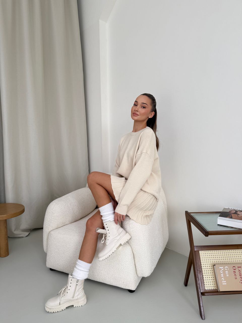 Kostým, který se skládá ze svetru a plisované sukně. Je to ideální kombinace pohodlí...