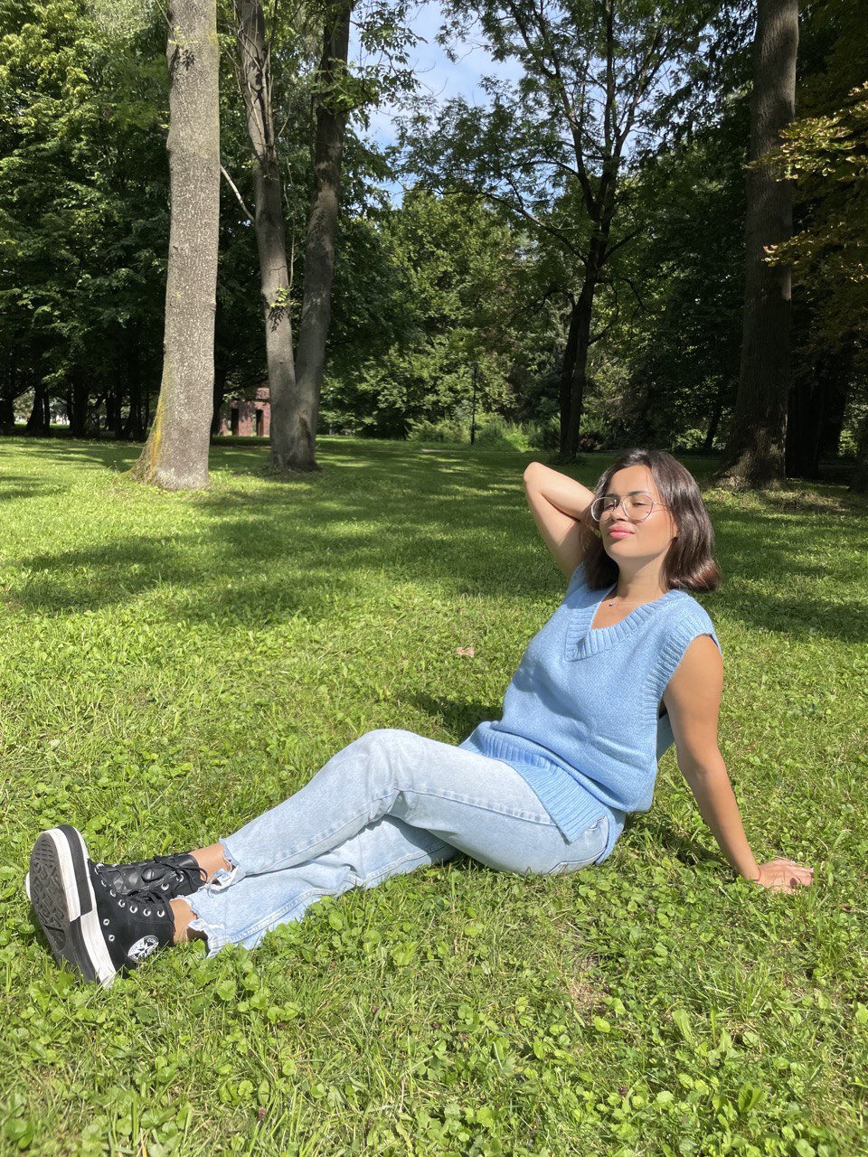 Stylový volný střih s hlubším výstřihem do V a postranními rozparky dodává modelu ležérní, ale elegantní vzhled.