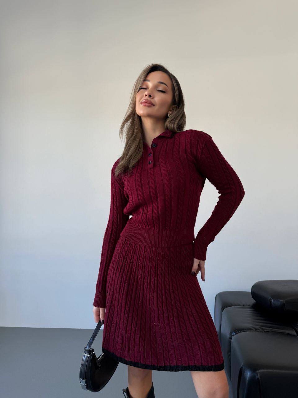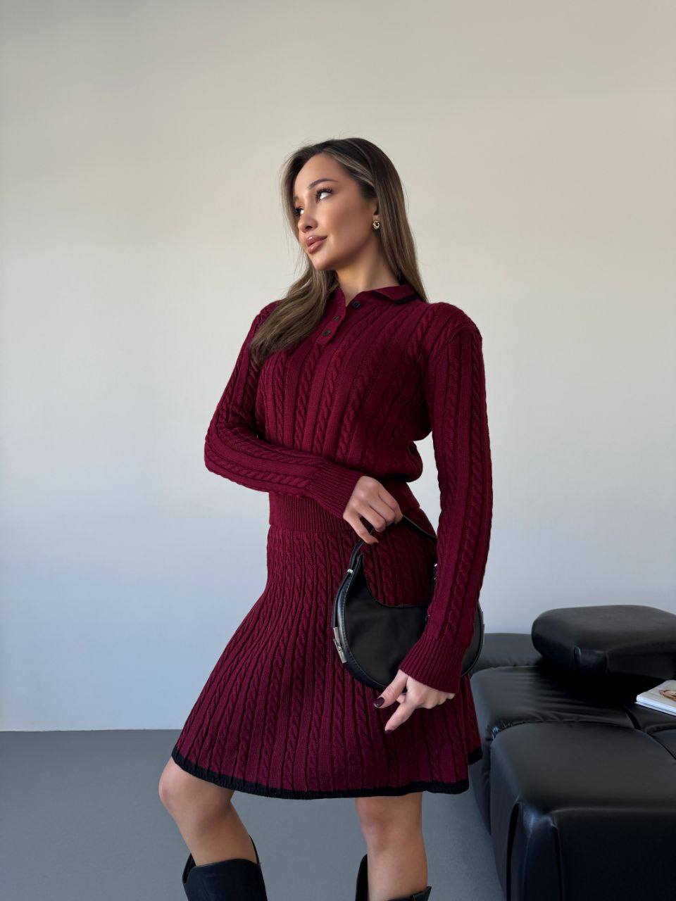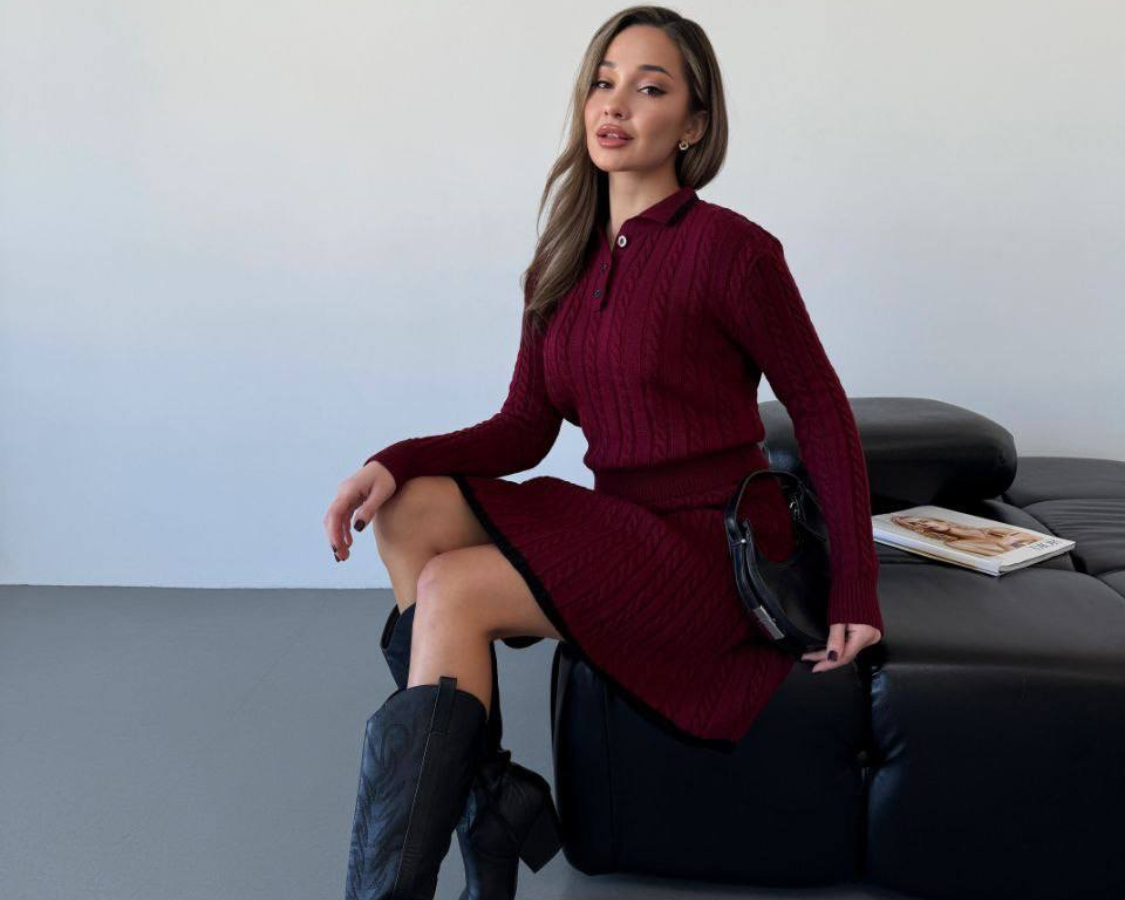 Elegantní dámský úpletový komplet – sukně a svetr