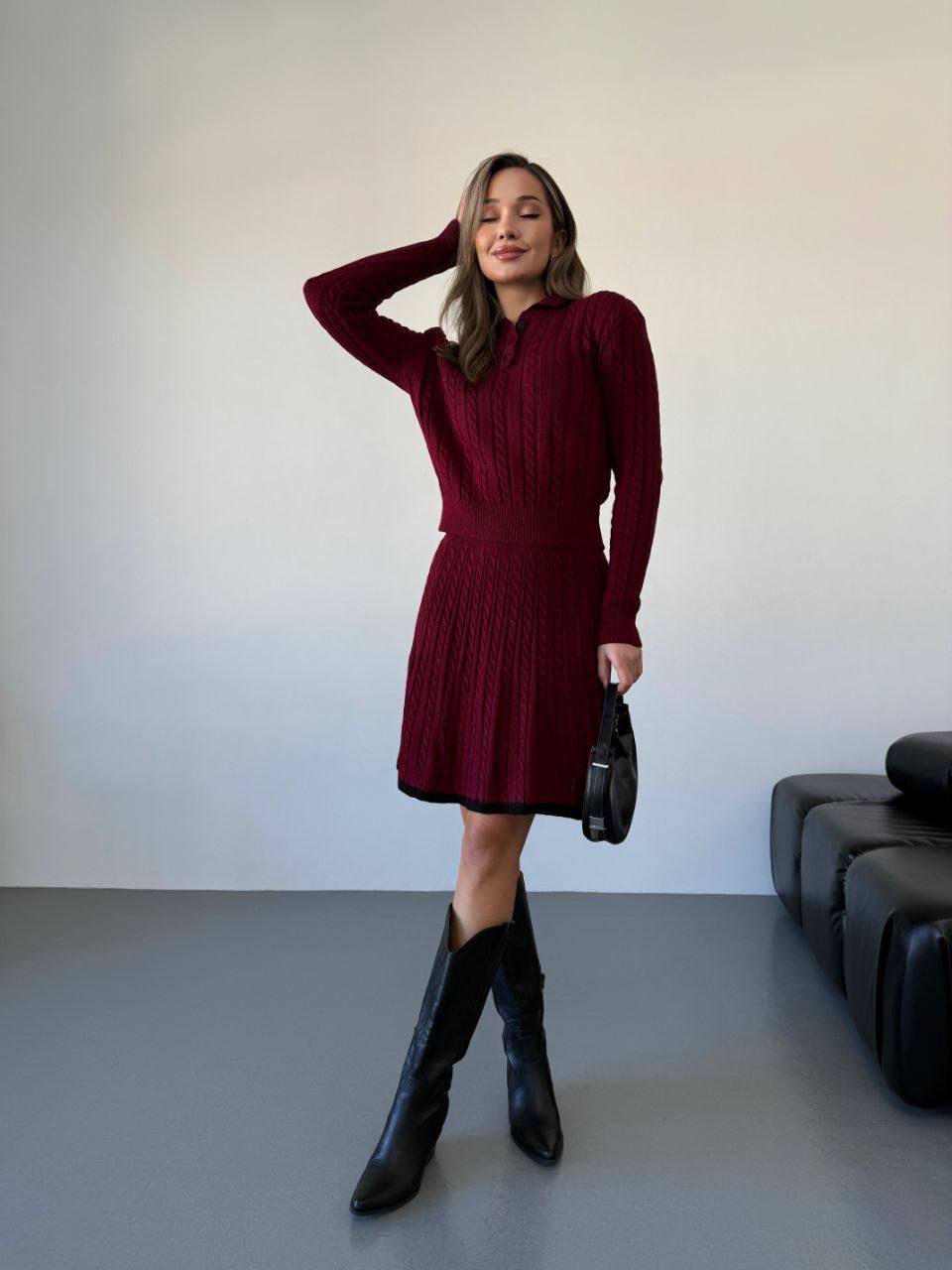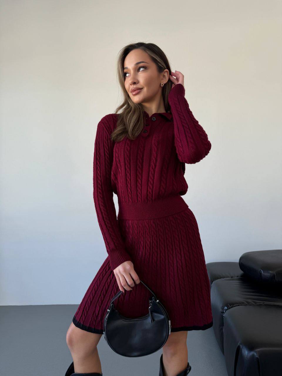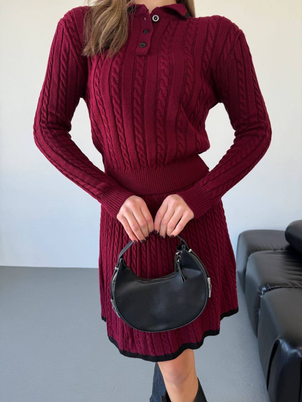 Elegantní dámský úpletový komplet – sukně a svetr