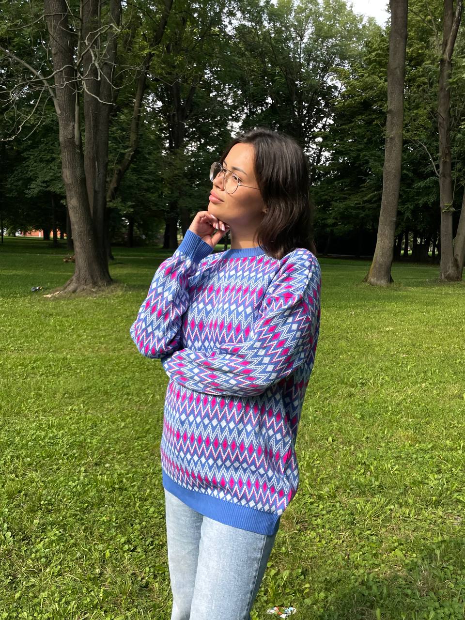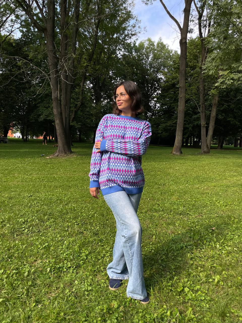 Elegantní svetr–tunika s velmi pěkným vzorem